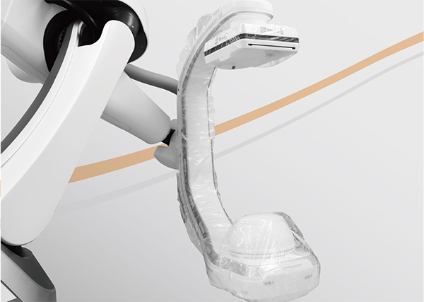 特にハイブリッドOR装置での手技においては、エックス線管やフラットパネル以外にもCアーム部分を覆うことを可能とした製品や、装置独特の形状にフィットさせることで手技の進行を円滑にサポートします。